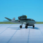 In September 1944, the Volksjäger (Peoples’ Fighter) design competition was initiated to create a lightweigh high-speed fighter/interseptor using a single BMW 003 turbojet engine, and intended for rapid mass-production while made primarily of wood as metals were in very short supply and prioritised for other aircraft. The Volksjäger was intended to be disposable, with damaged aircraft being discarded rather than repaired, and was to be flown by pilots hastily trained on gliders.