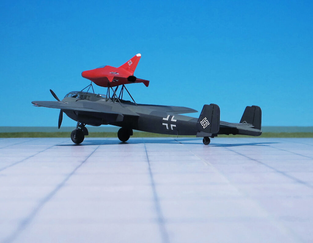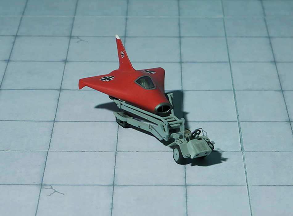 For take-off the aircraft sat on a solid-fuel rocket-driven trolley or was towed by a tow-plane. It was envisaged that for test purposes the aircraft was placed on a superstructure on a carrier plane, probably a Dornier Do 217K. Finally, the Lippisch P.12 project was abandoned in favor of the P.13b (Ref.: 17).